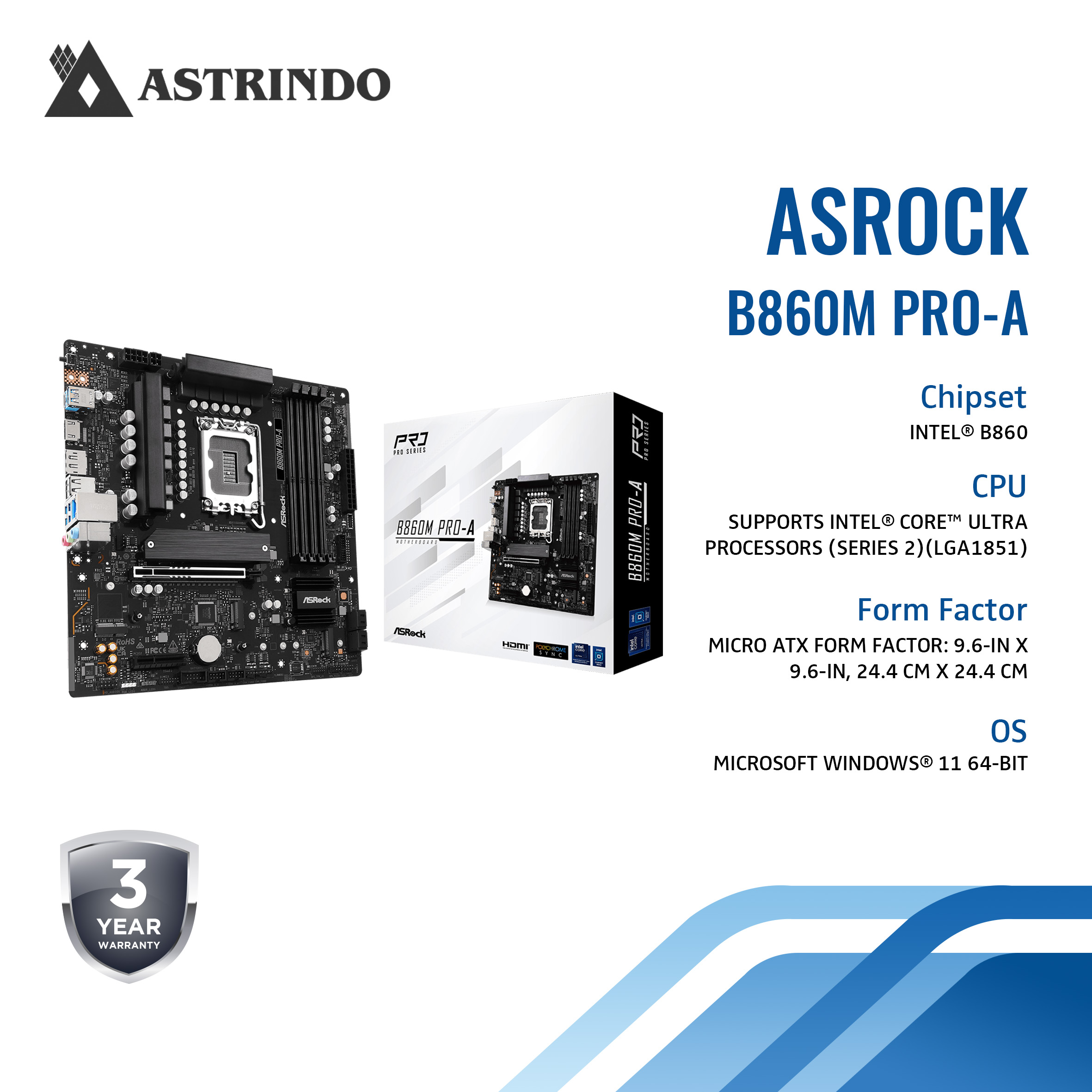 ASROCK Asrock Motherboard B860M PRO-A Supports Intel® Core™ Ultra Processors (B860M PRO-A)