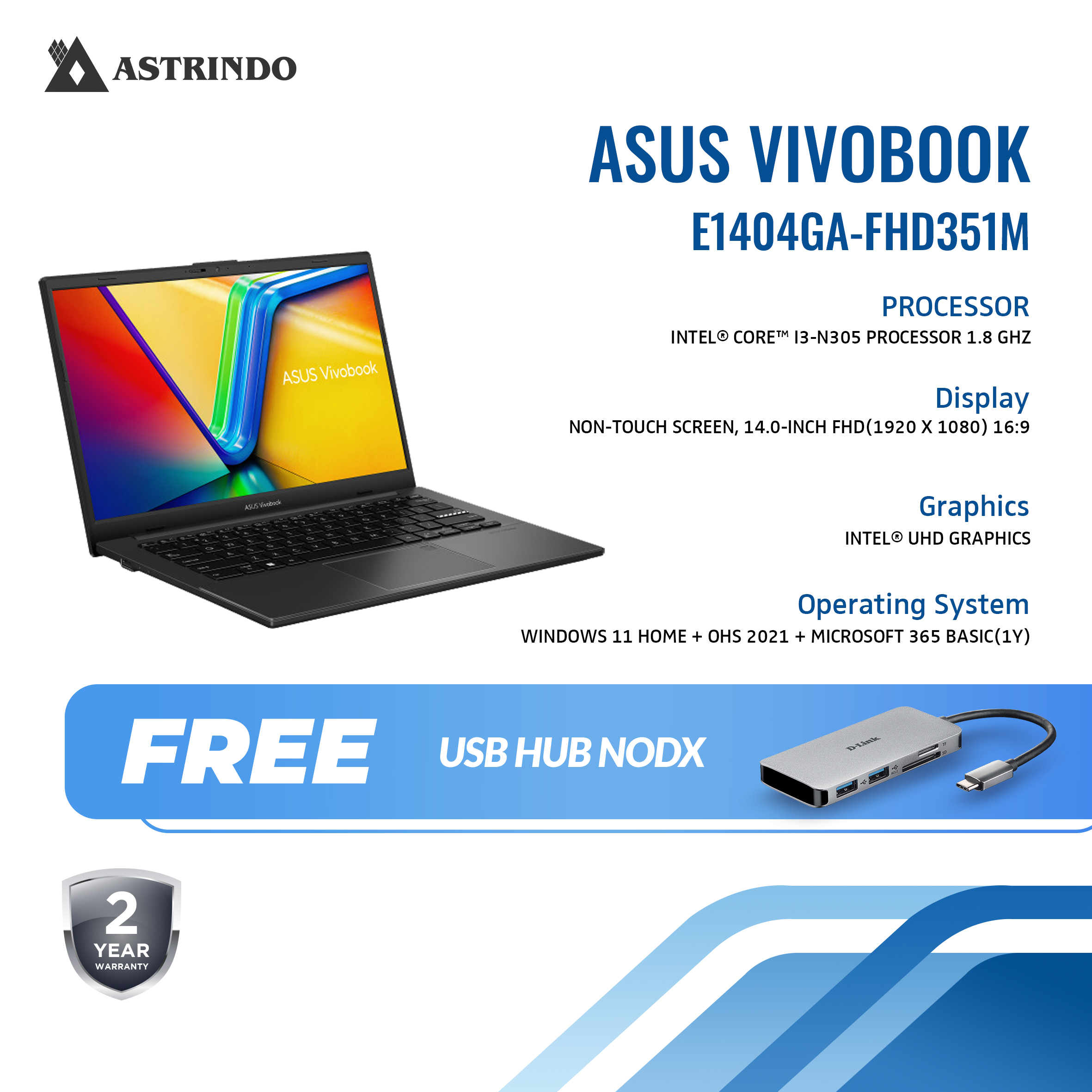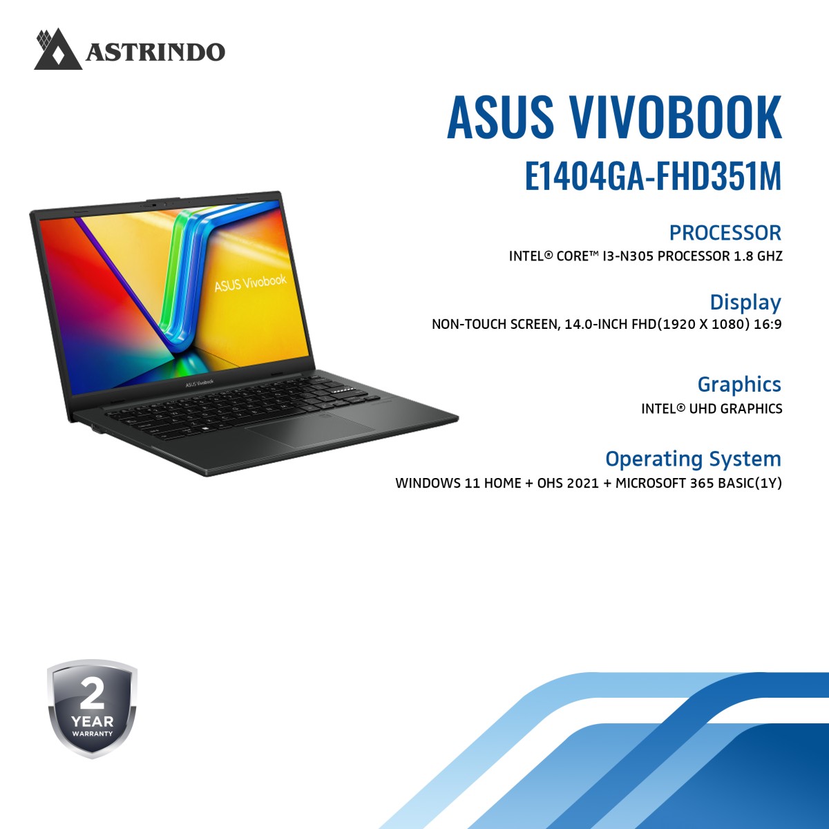 ASUS Asus Laptop Vivobook Go 14″ FHD E1404GA FHD351M Intel Core i3-N305 8GB/512GB Win 11 - Mixed Black (E1404GA-FHD351M)