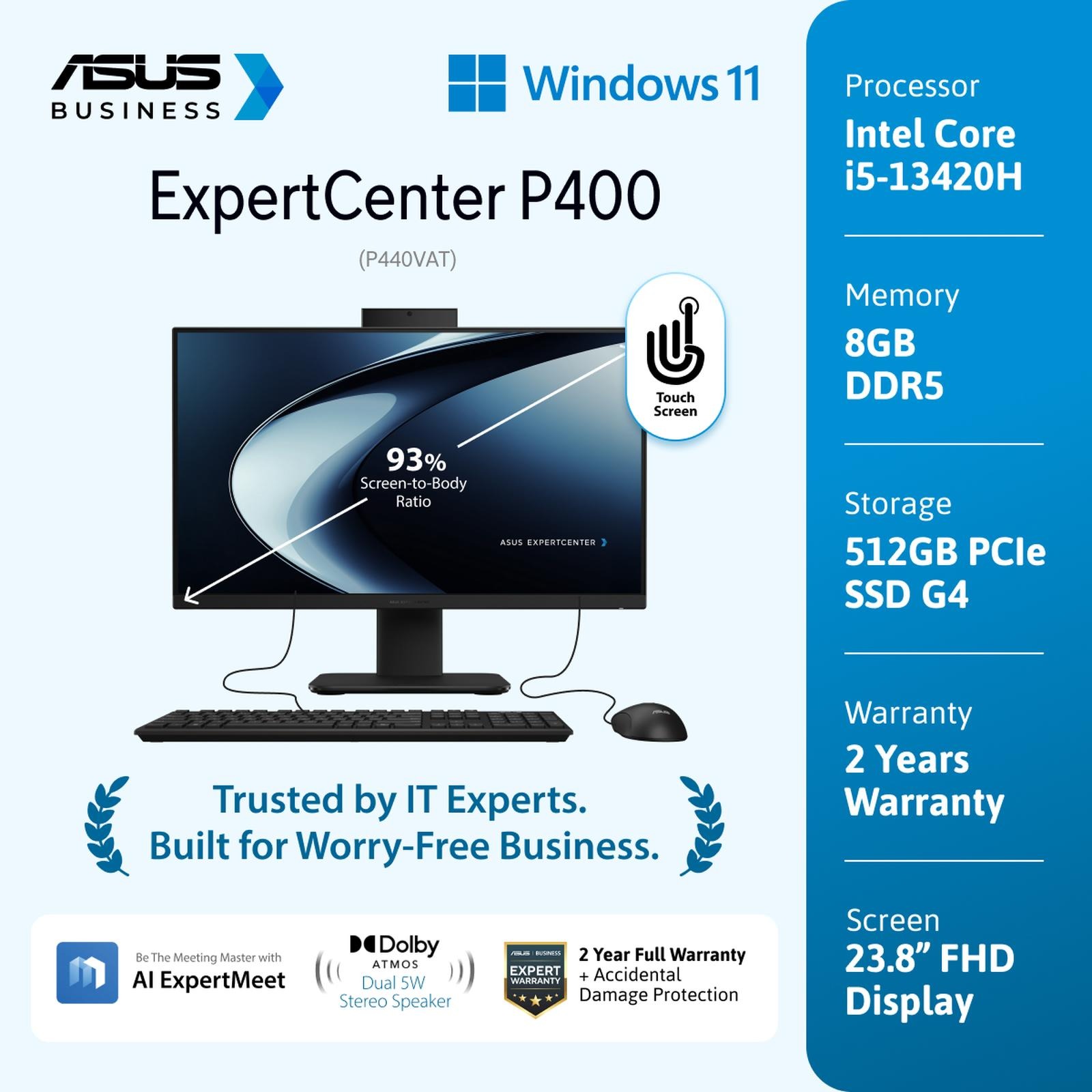 ASUS Asus P400 PC AIO P440VAT-B5850WS (i5-13420H|TouchScreen|RAM 8GB|SSD 512GB|Win11|OHS24+365|Black) (P440VAT-B5850WS)