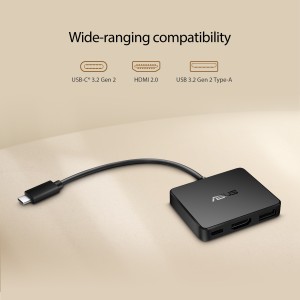 ASUS USB-C Mini Dock adalah docking USB-C® yang ringkas dan ringan yang memberi PC dan laptop opsi ekspansi tambahan. Perangkat ini dilengkapi port HDMI® dengan output 4K, USB Type-A dan USB-C untuk kecepatan transfer hingga 10 Gbps, serta power delivery passthrough hingga 100 W.