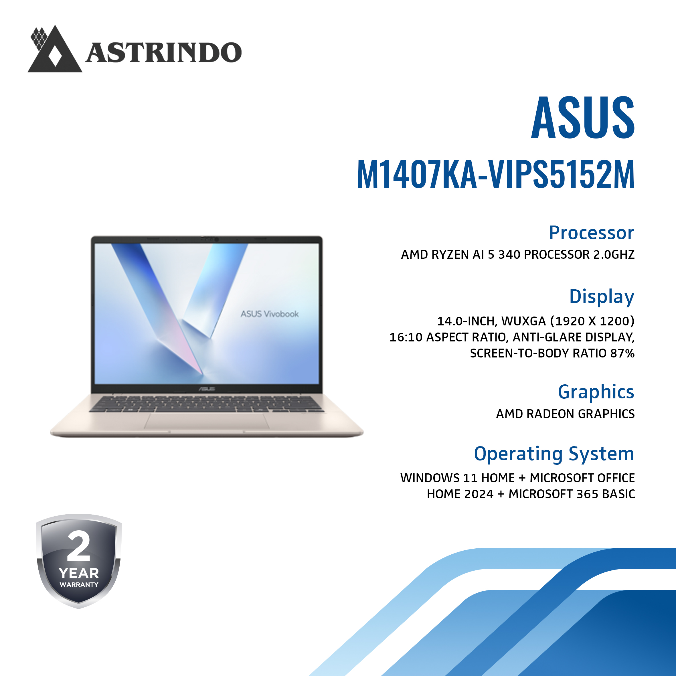 ASUS Asus Vivobook 14″ WUXGA M1407KA VIPS5151M Ryzen AI 5 340/16GB/512GB + FREE M365/Win 11 + Backpack - (M1407KA-VIPS5152M)