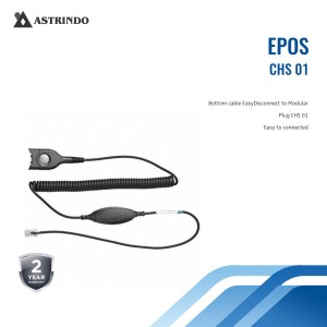 - Sennheiser Cable Connector CHS 01, memiliki Connector RJ9 yang Berfungsi untuk koneksi headset Sennheiser Model ED (Easy Disconnect) ke telepon meja, kompatibel untuk semua jenis Headset Sennheiser dengan Koneksi kabel ED.
