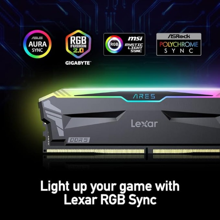 LEXAR Lexar 32GB (2x16GB) ARES RGB DDR5 RAM 7200MT/s CL34 1.4V Desktop Memory - Intel XMP 3.0 & AMD EXPO C (LD5U16G72C34LA-RGD)