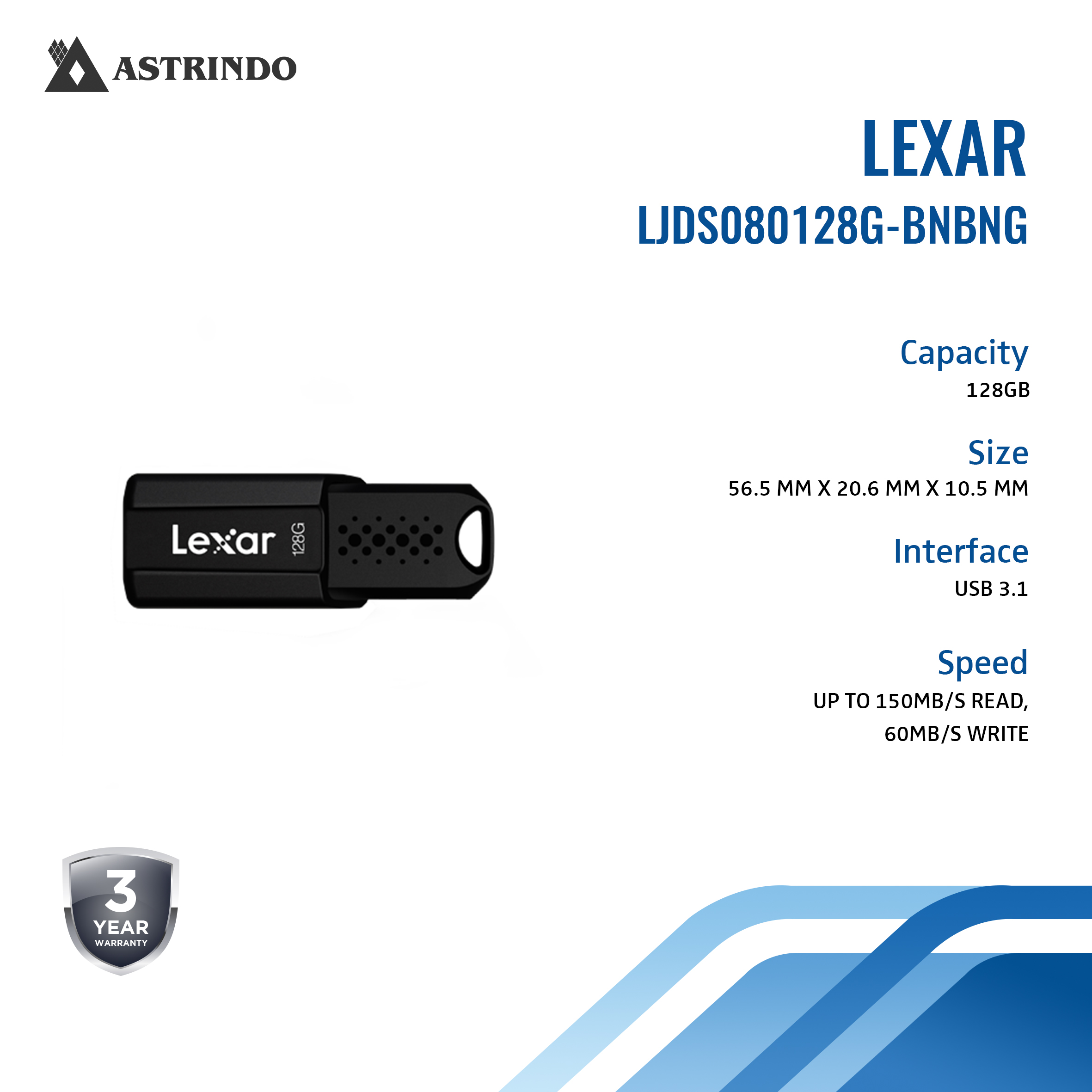 LEXAR Lexar Flashdisk JumpDrive S80 128GB USB Flash Drive 3.1 up to 150MB/s Black (LJDS080128G-BNBNG)