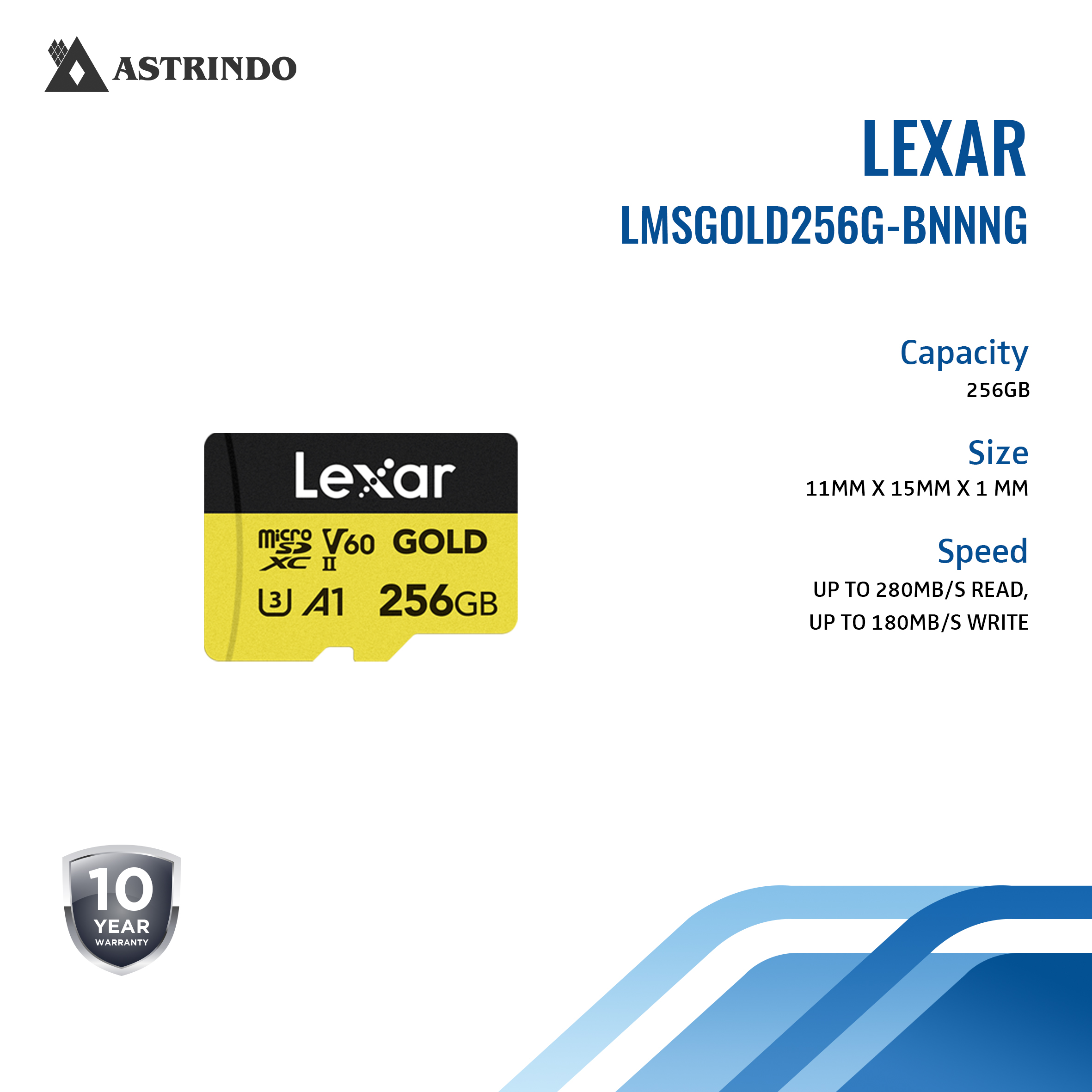 LEXAR Lexar Gold Micro SD 256GB MicroSDXC UHS-II V60 Professional Memory Card up to 280MB/s (LMSGOLD256G-BNNNG)