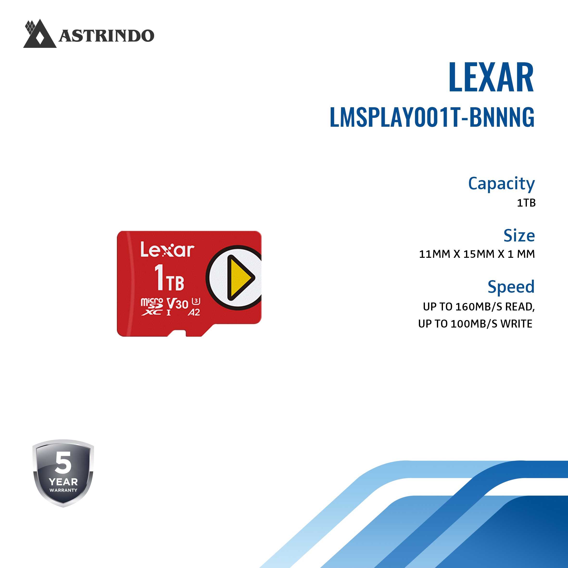 LEXAR Lexar Play Micro SD 1TB MicroSDXC UHS-I A2 Memory Card Gaming up to 160MB/s (LMSPLAY001T-BNNNG)
