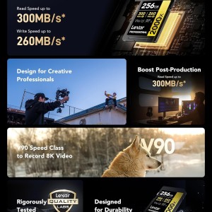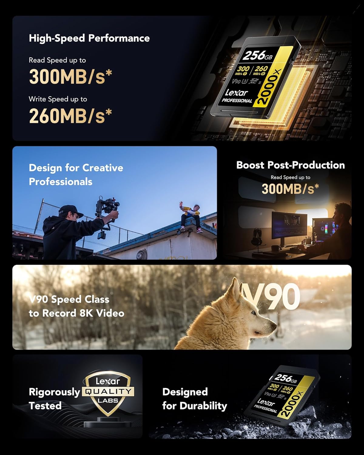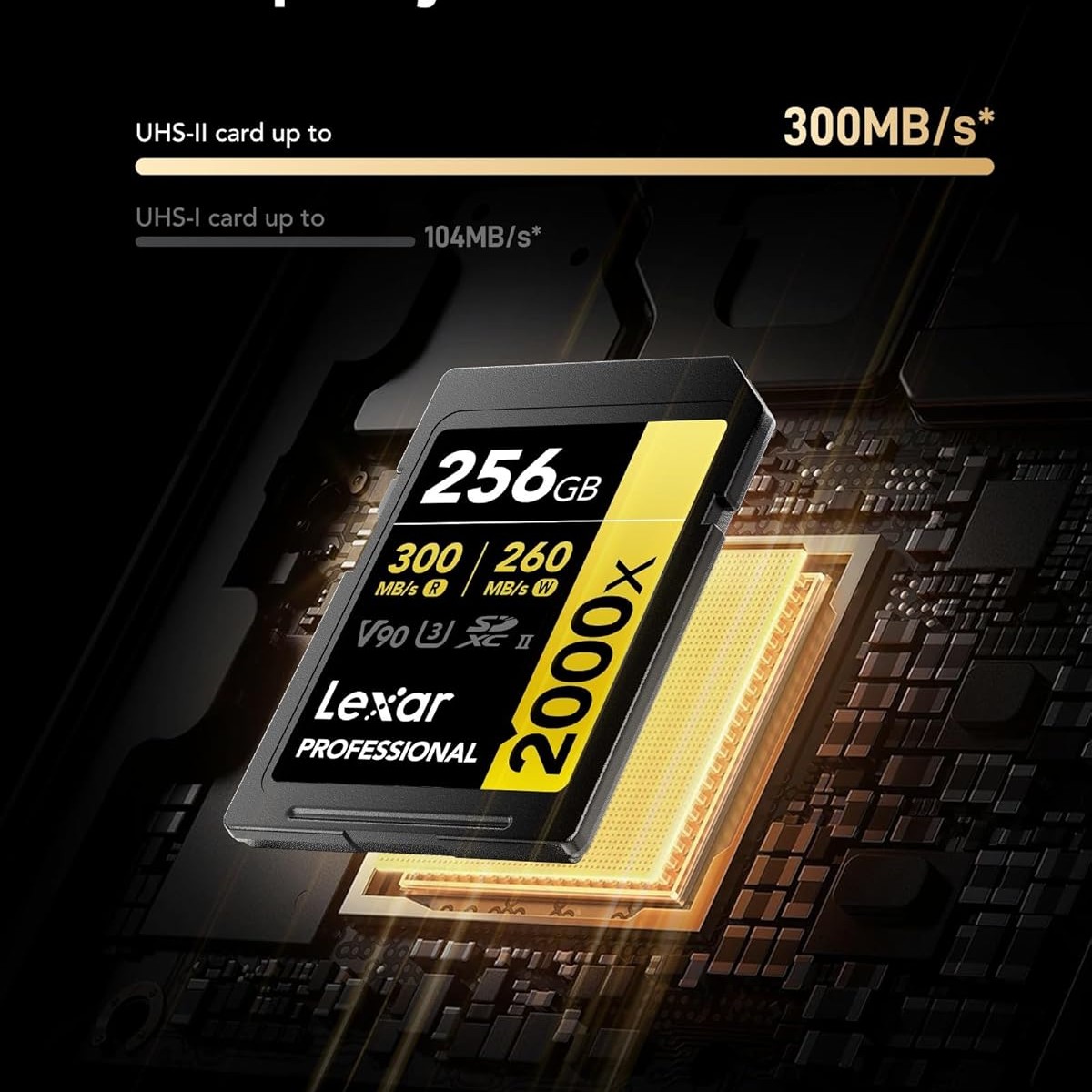 LEXAR Lexar Professional 2000x SD Card 256GB, SDXC UHS-II Memory Card, Up to 300MB/s Read, 260MB/s Write (LSD2000256G-BNNNG)