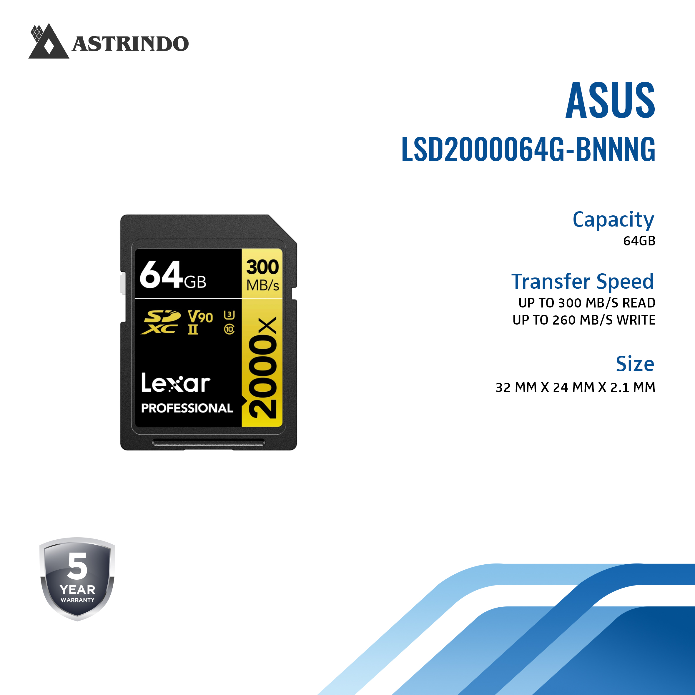 LEXAR Lexar SD Card Professional 2000x SDXC UHS-II Memory Card 64GB (LSD2000064G-BNNNG)