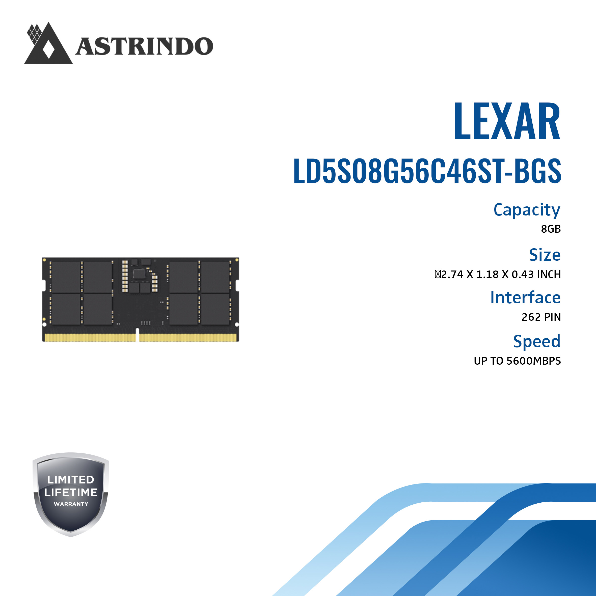 LEXAR Lexar SODIMM 8GB DDR5 RAM 5600MHz 262-Pin DDR5 SODIMM Laptop RAM High Performance (LD5S08G56C46ST-BGS)