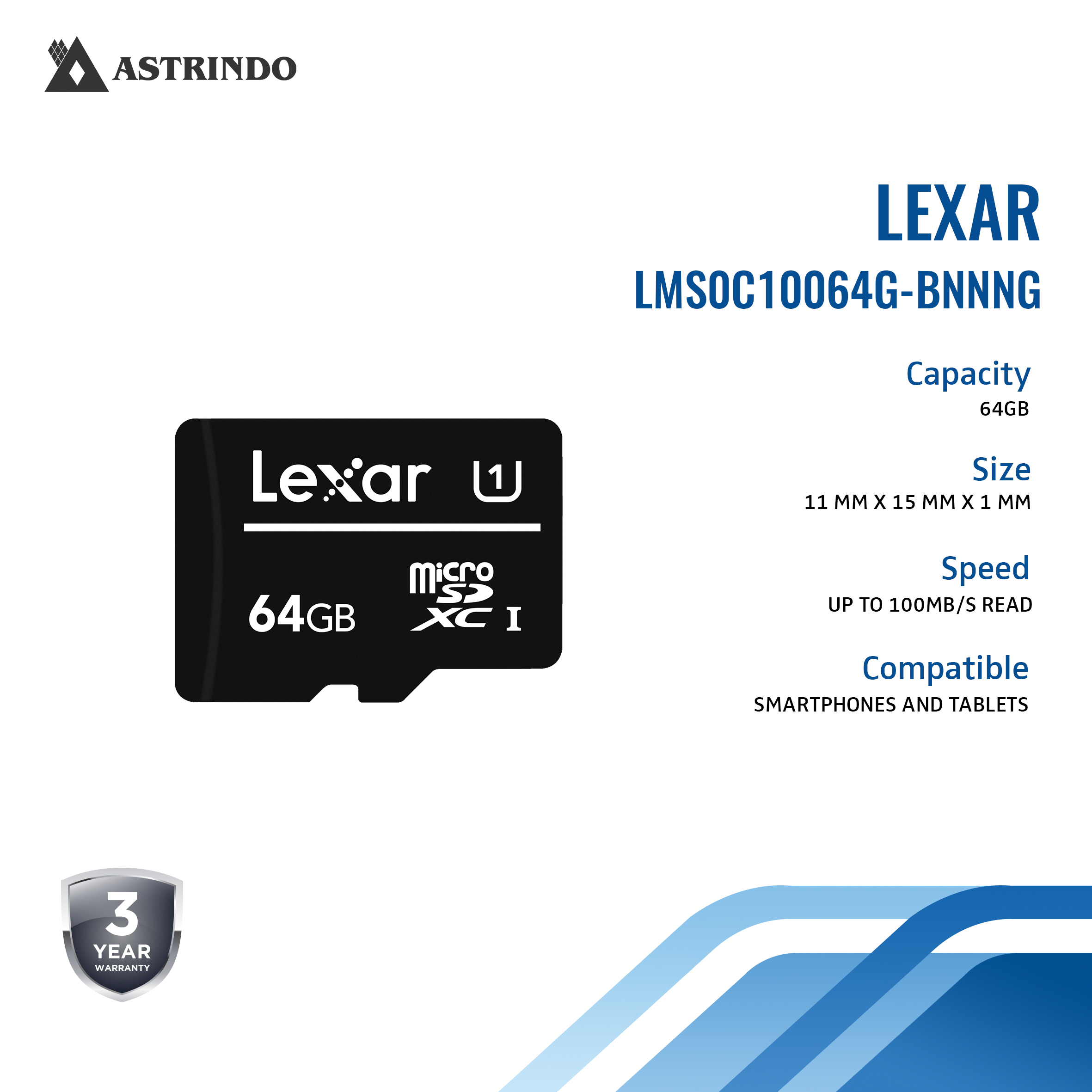 LEXAR MicroSD C10 SDXC/SDHC UHS-I 64GB Memory Card up to 100MB/s (LMS0C10064G-BNNNG)