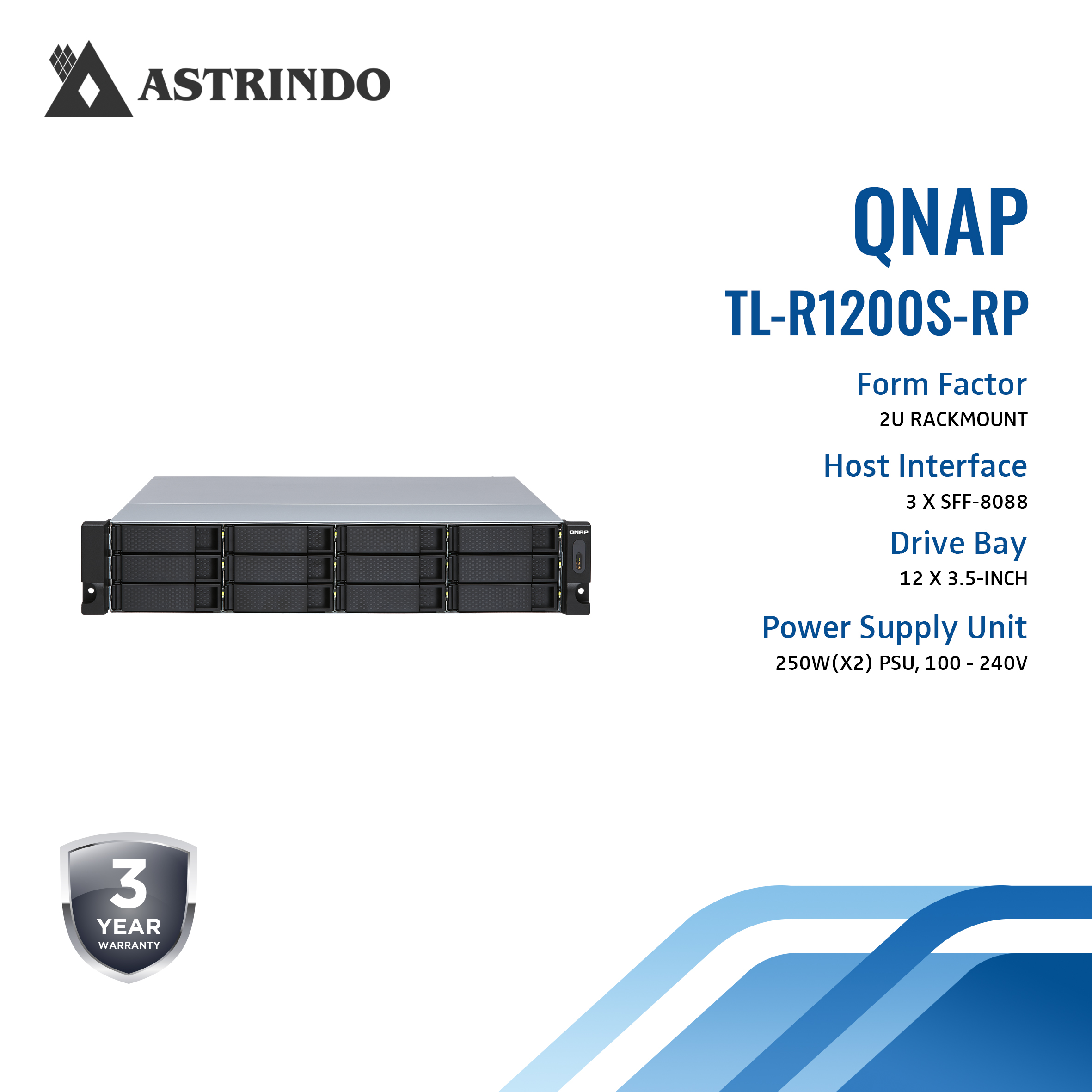 QNAP QNAP TL-R1200S-RP 12 Bay 2U Rackmount SATA 6Gbps JBOD Storage Enclosure with Redundant Power Supply (TL-R1200S-RP)