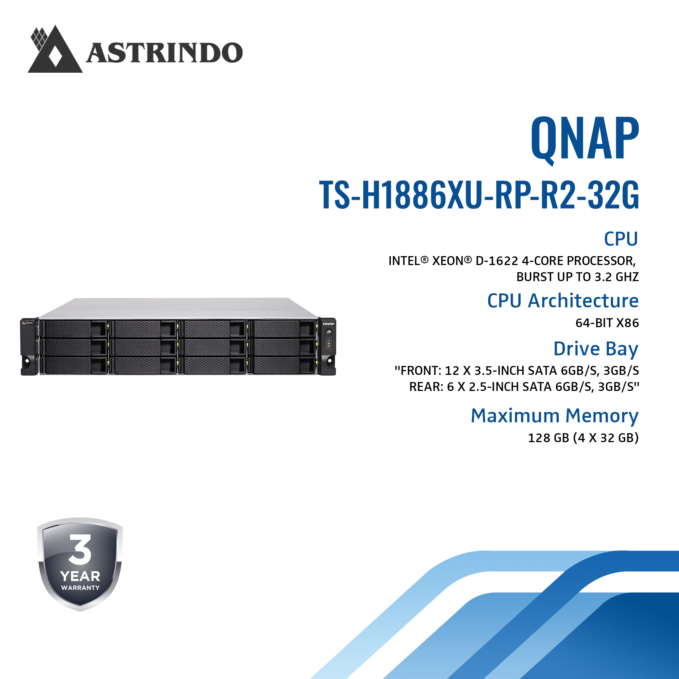 QNAP QNAP TS-H1886XU-RP-R2-D1622-32G 18-BAY NAS 32GB SERVER STORAGE CLOUD (TS-H1886XU-RP-R2-32G)