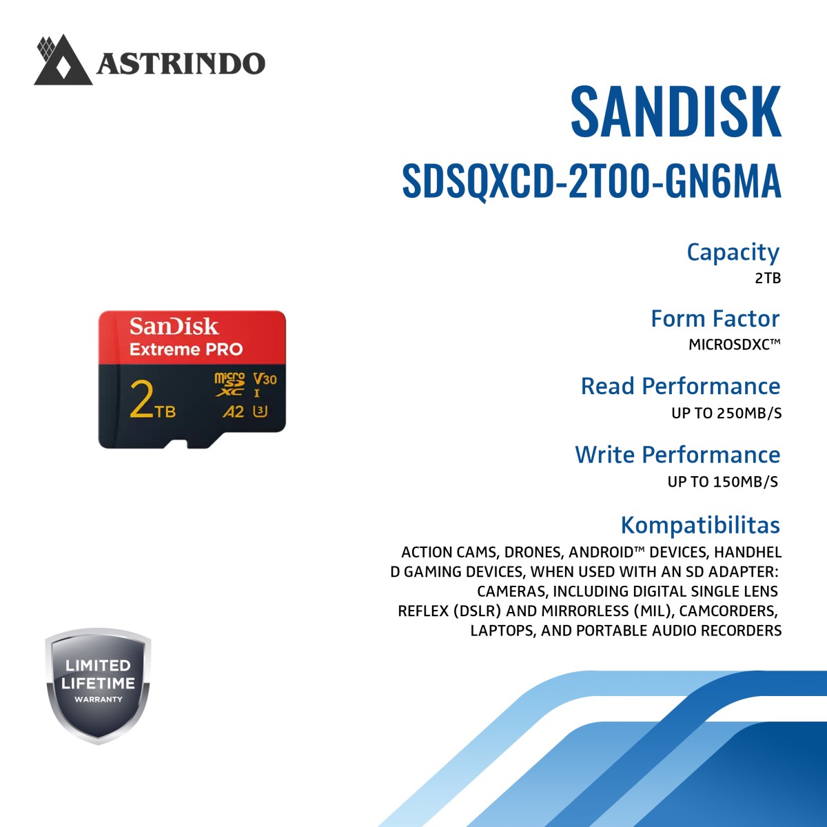 SANDISK SanDisk 2TB Extreme PRO microSDXC™ UHS-I Card, Up to 250MB/s Read Speed; Up to 150MB/s Write Speed, (SDSQXCD-2T00-GN6MA)