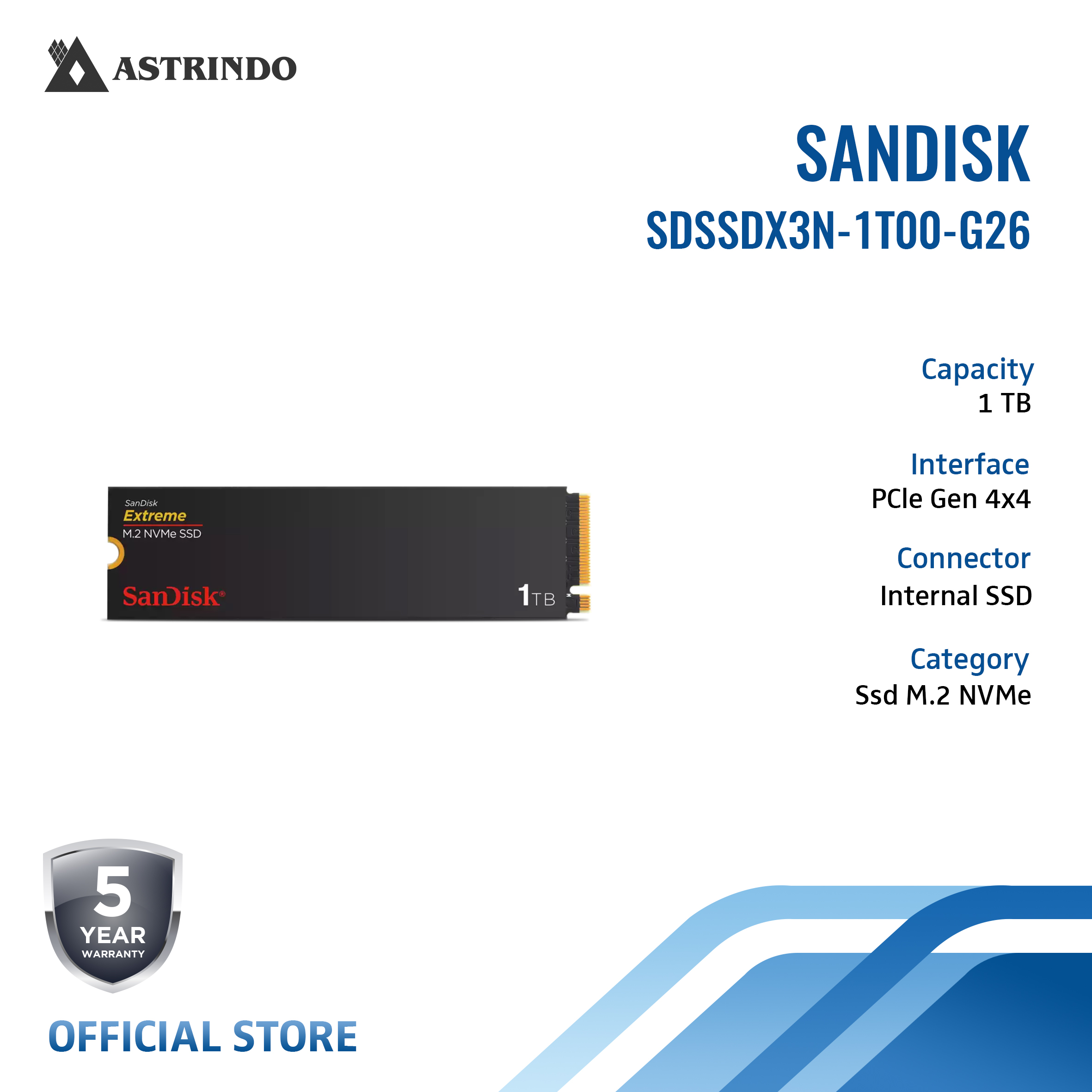 SANDISK SanDisk Extreme NVMe SSD 1TB PCIe Gen 4.0 M.2 2280 (SDSSDX3N-1T00-G26)