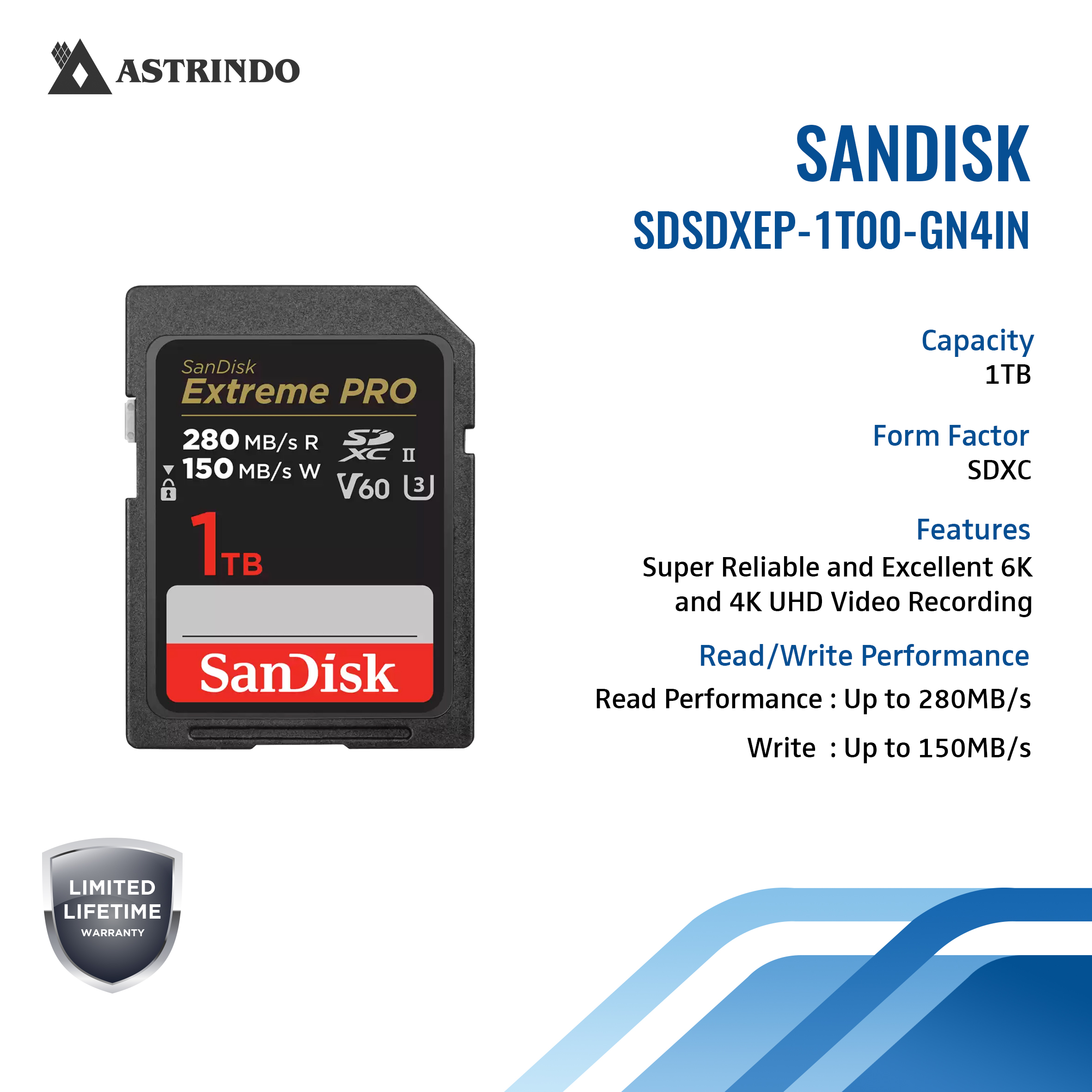 SANDISK SanDisk Extreme Pro SD Card 1TB SDXC UHS-II Memory Card Up to 280MB/s (SDSDXEP-1T00-GN4IN)