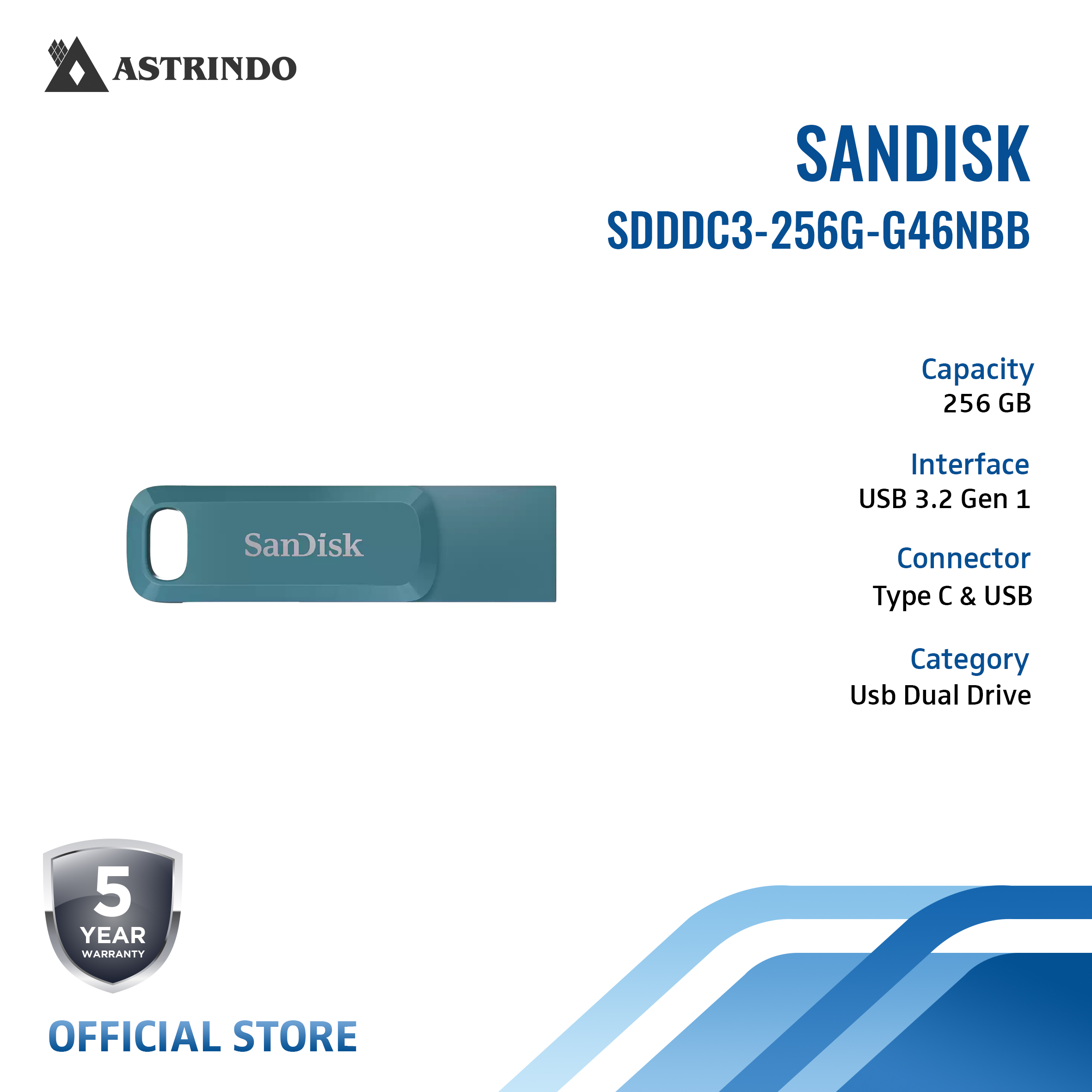 SANDISK SanDisk Ultra® Dual Drive Go USB Type-C™ Flash Drive SDDDC3 256GB USB3.2 Gen 1 Navagio Bay (SDDDC3-256G-G46NBB)