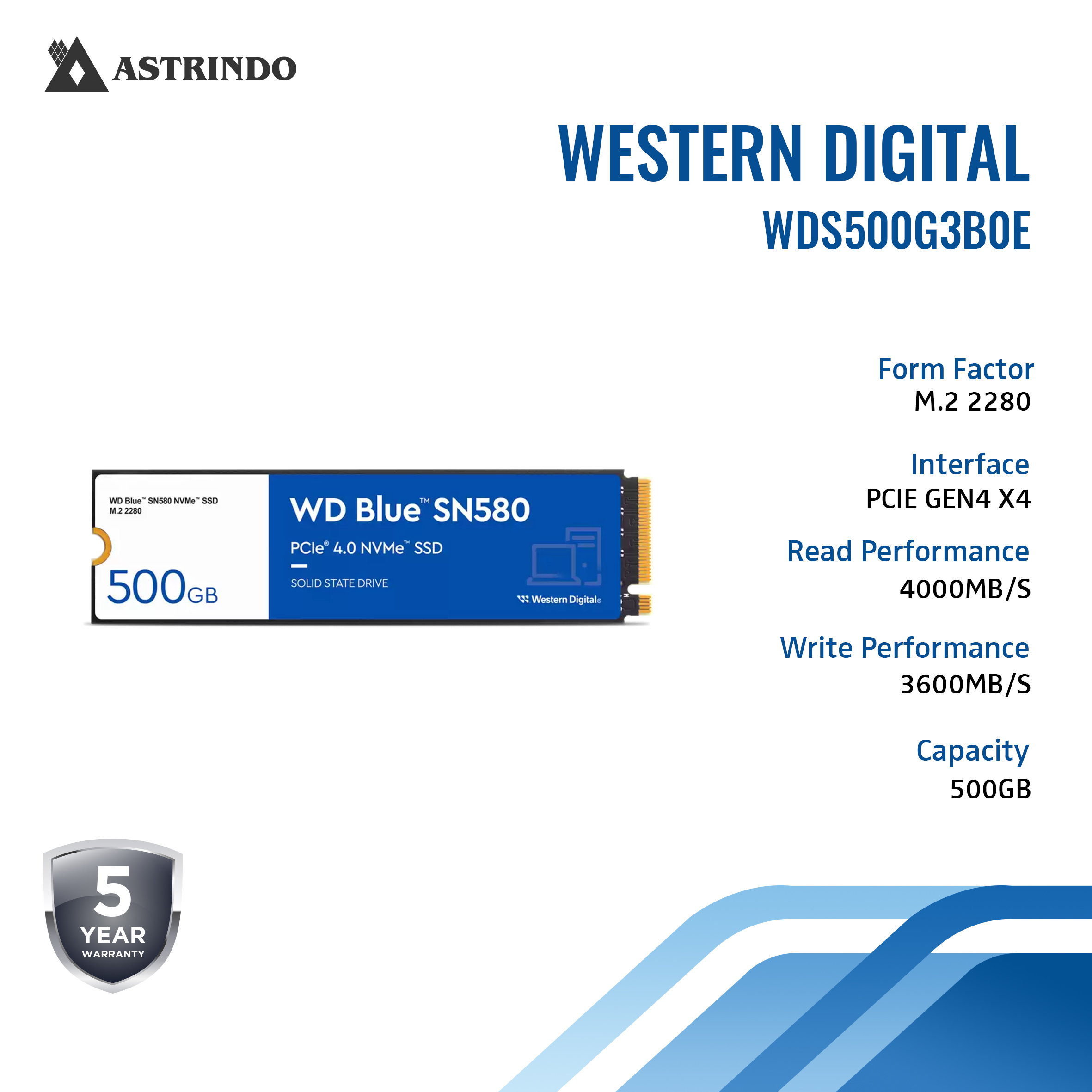 WESTERN DIGITAL WD Blue™ SN580 NVMe™ SSD, 500GB - Gen4 (WDS500G3B0E)