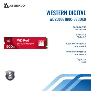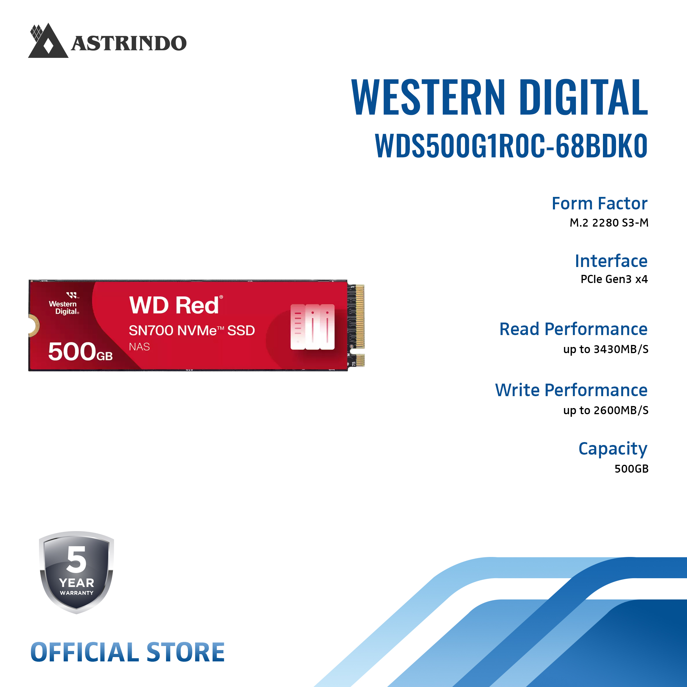 WESTERN DIGITAL WD SSD Red SN700 NVMe M.2 2280 S3-M SSD Internal 500GB PCIe Gen 3 x4 for NAS (WDS500G1R0C-68BDK0)